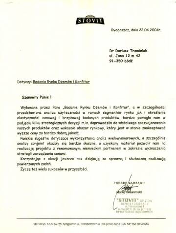 - Kierownik projektu i autor badań dla STOVIT sp. z o.o. – zmiany w asortymencie i zmiany cen