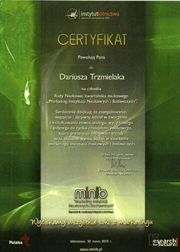 Stopień naukowy doktora nauk ekonomicznych w dziedzinie zarządzania uzyskałem w 2001 roku za pracę pt.: Kształtowanie nowego produktu przy wykorzystaniu analizy wielowymiarowych. Swoją pracę habilitacyjną: Komercjalizacja wiedzy i technologii – stymulanty i strategie ukończyłem w roku 2013.